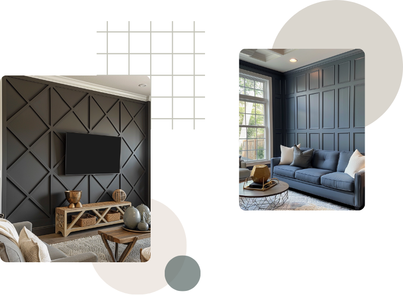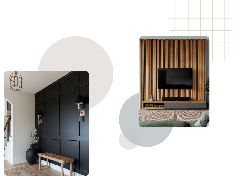 We use various materials, including wood, paint, tiles, textiles, and even 3D panels, to create a stylish and durable accent.
