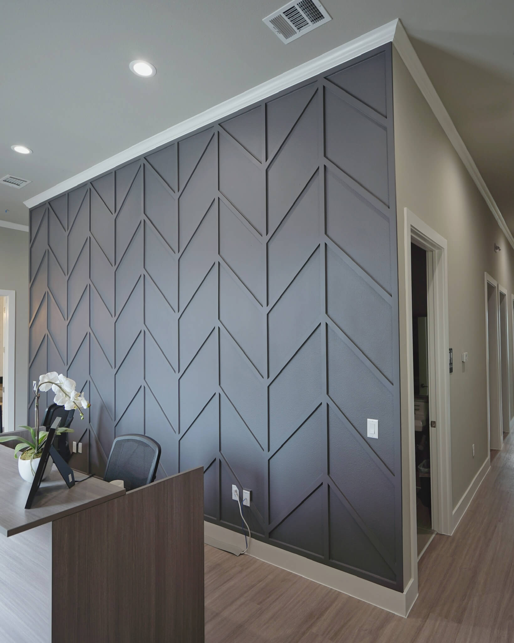 Chevron adds character and structure to an accent wall, making it a focal point in the interior.