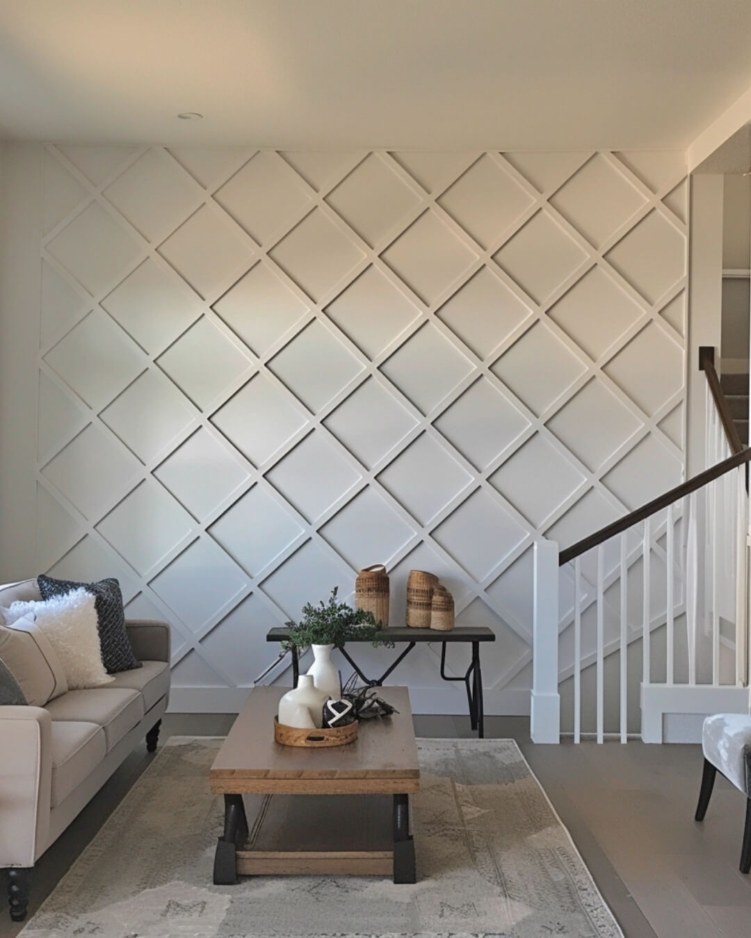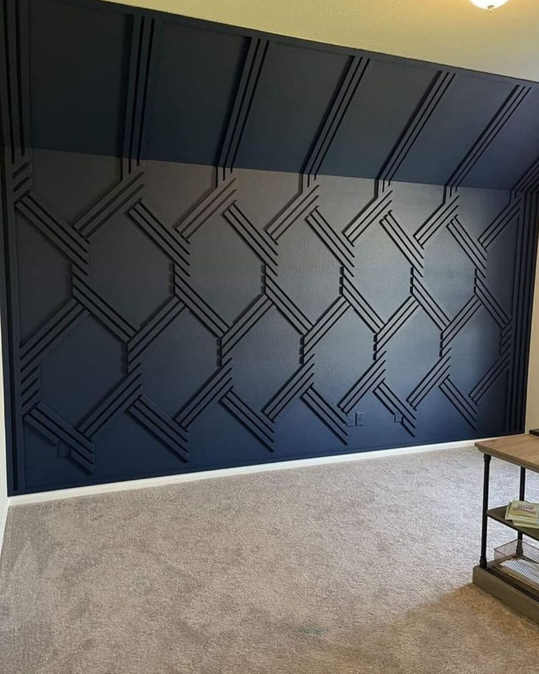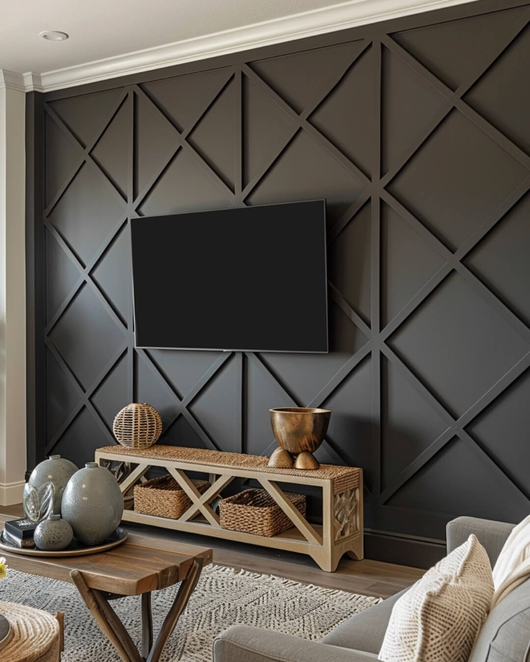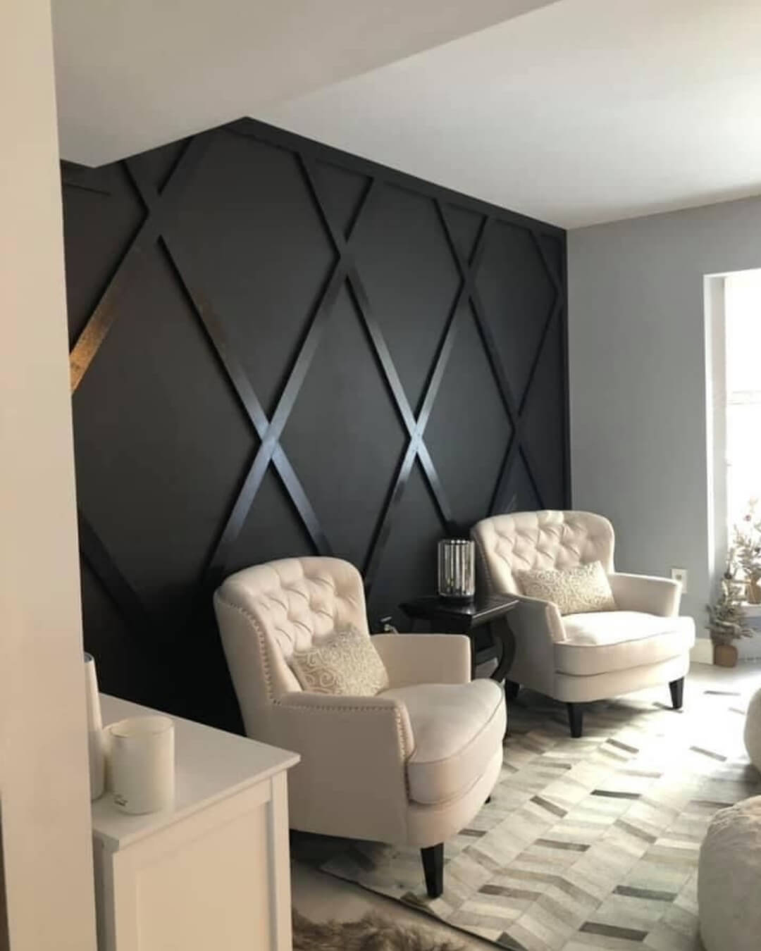 An accent wall with the Argyle pattern becomes the visual centerpiece of the room, giving it a sophisticated and stylish look.