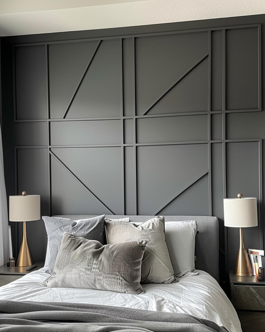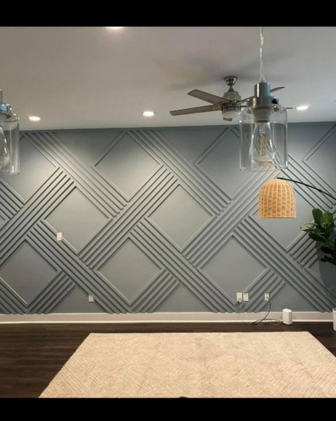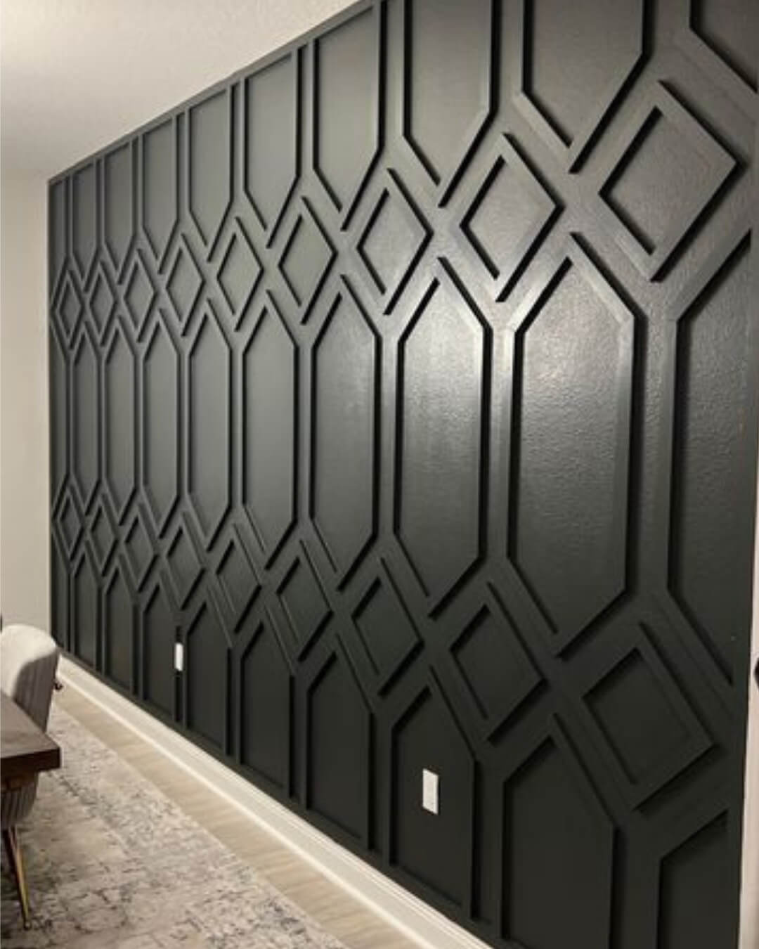 An accent wall with the Argyle pattern becomes the visual centerpiece of the room, giving it a sophisticated and stylish look.