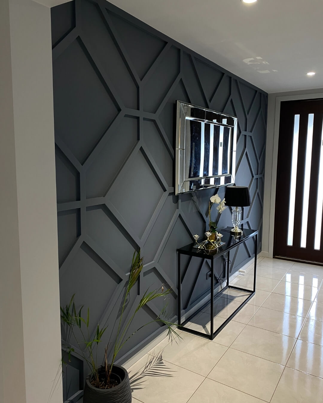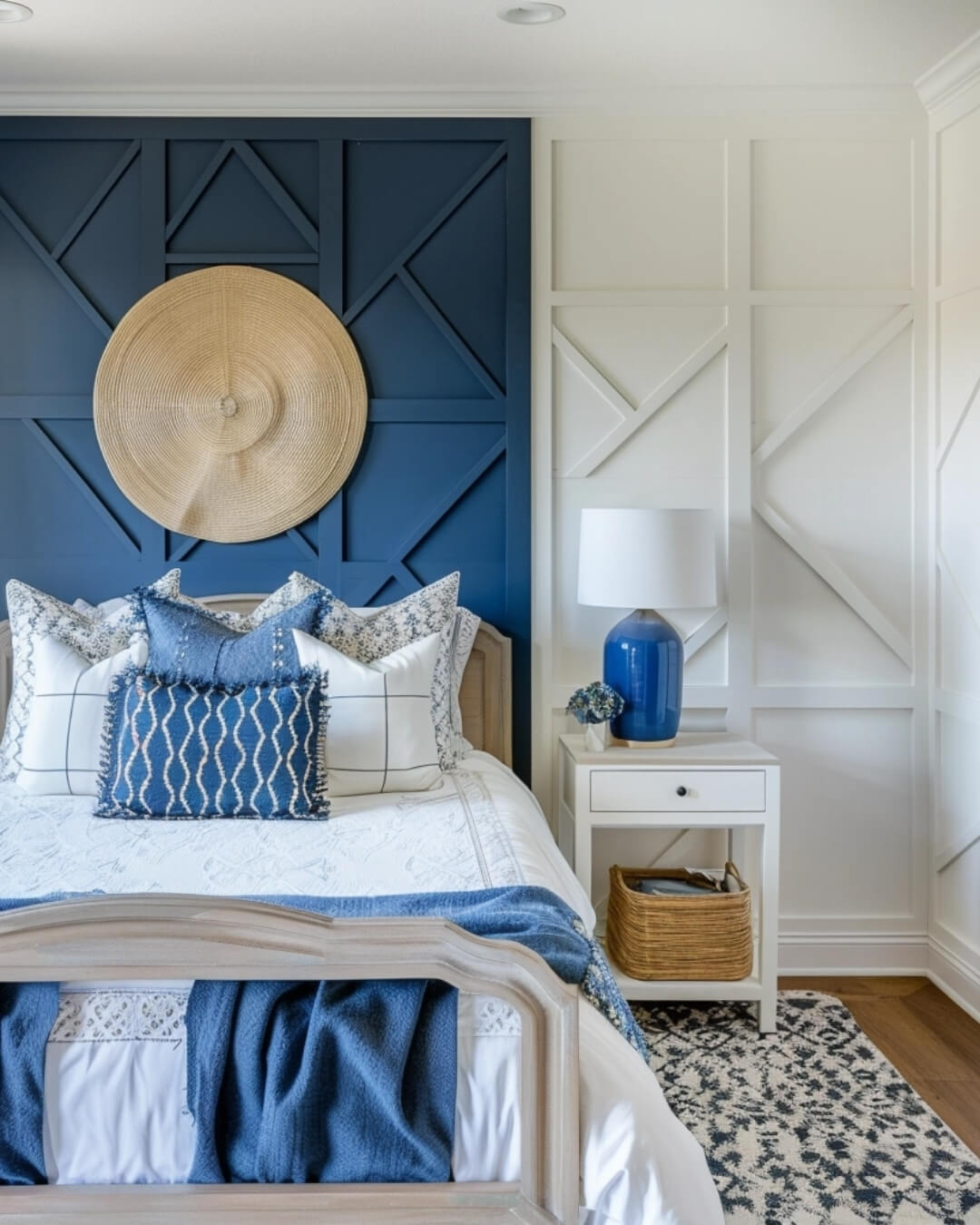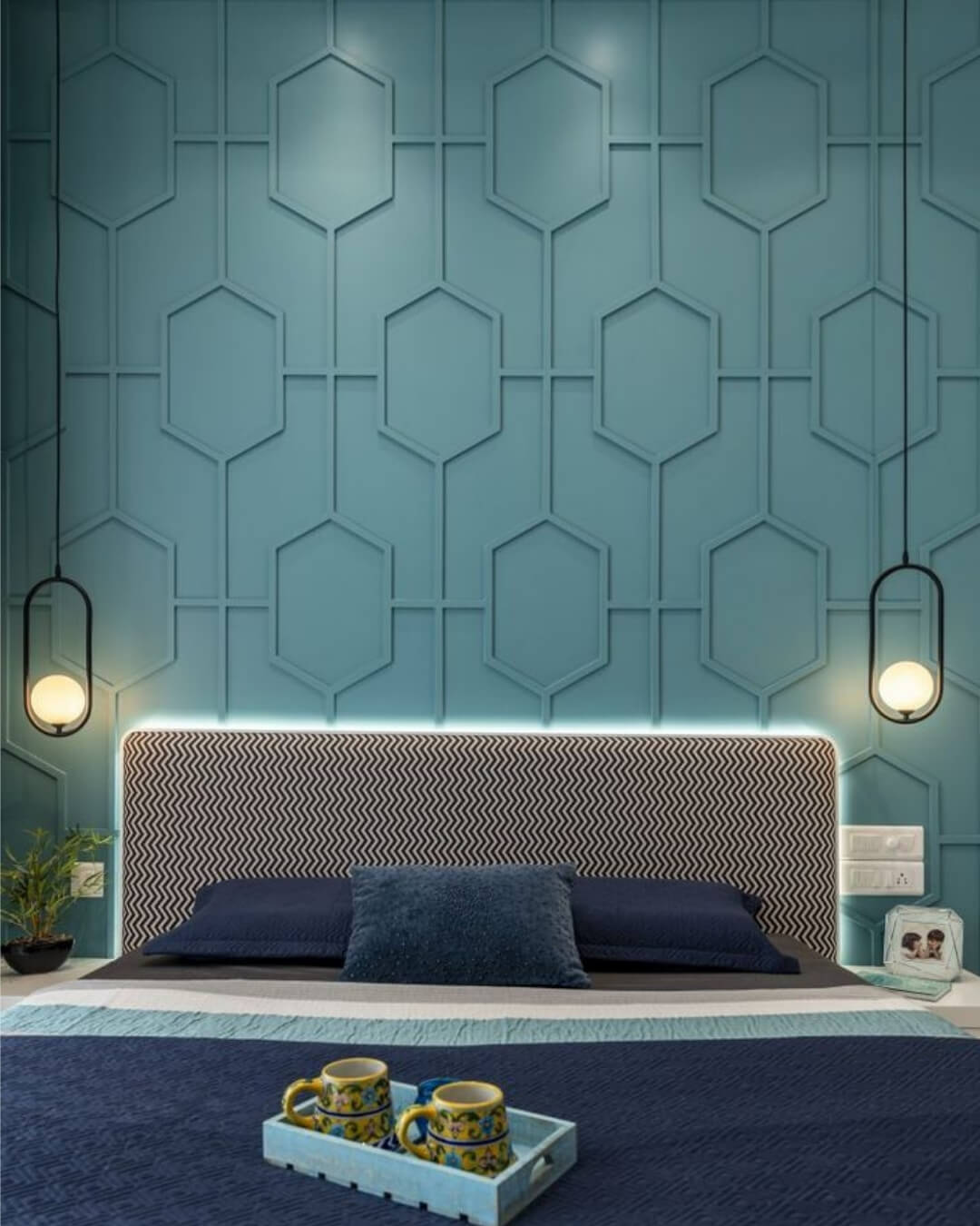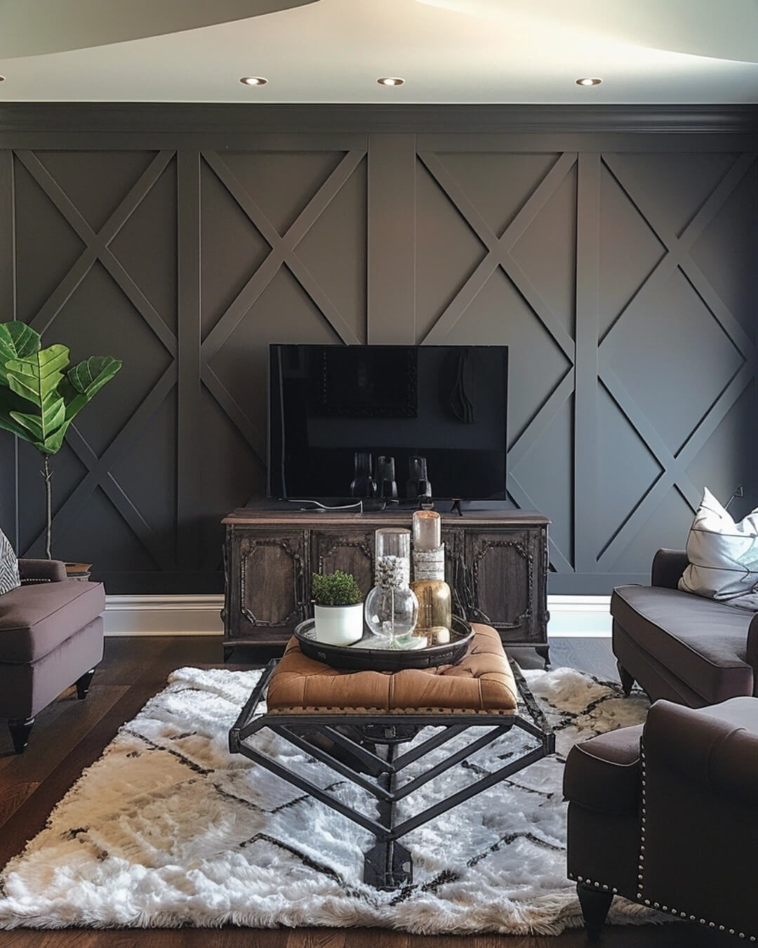 An accent wall with the Argyle pattern becomes the visual centerpiece of the room, giving it a sophisticated and stylish look.