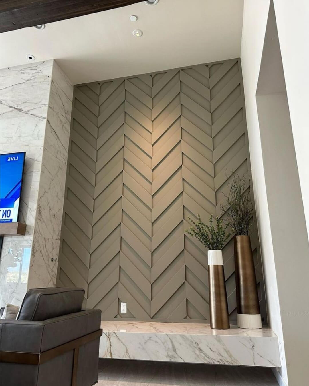 Chevron adds character and structure to an accent wall, making it a focal point in the interior.