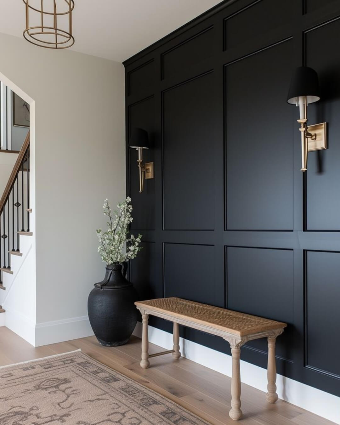 Wainscoting adds nobility and completeness to an accent wall, creating a cozy atmosphere and comfort in your home.