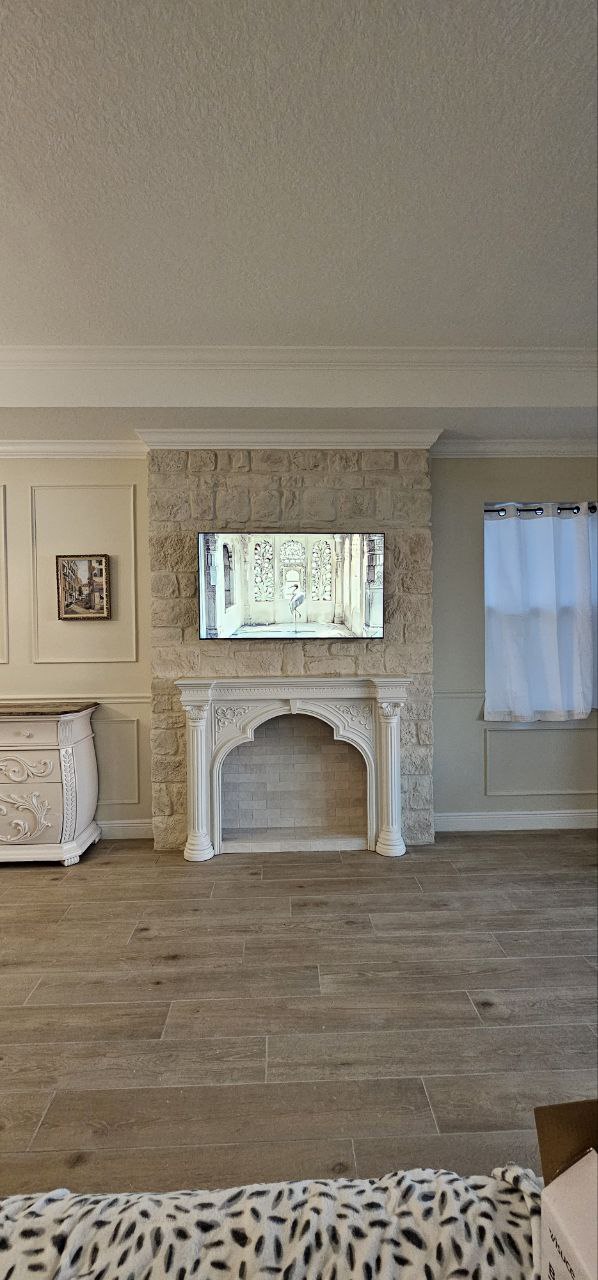 Well-suited for living rooms with higher ceilings or open layouts, floor-to-ceiling fireplace walls enhance the overall scale of the space. Large-format finishes and subtle accent lighting help achieve a clean, elegant, and high-end appearance.