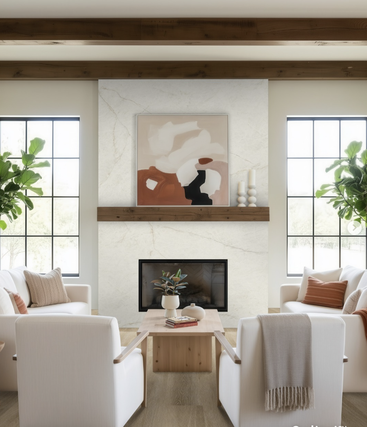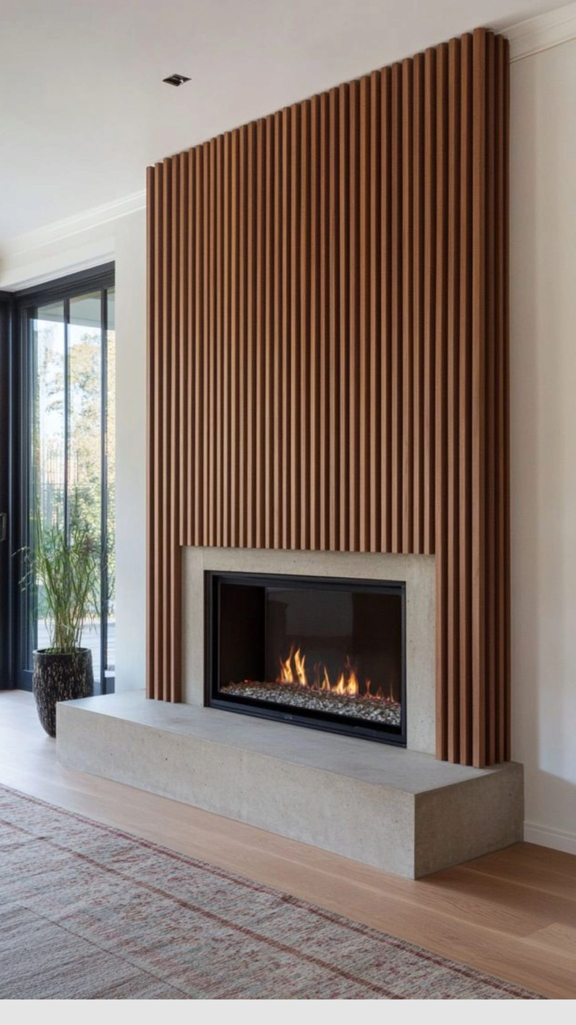 A full-height fireplace wall designed to create a bold architectural focal point.
